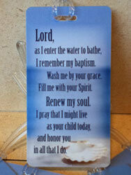 Pastor and author, Adam Hamilton, offers a unique and meaningful practice for members of his congregation at The United Methodist Church of the Resurrection in Leawood, Kansas. A waterproof card can be hung in a shower or bathroom, as a daily reminder of one’s baptism, every time she or he steps into the water. On the card, we find the following prayer: “Lord, as I enter the water to bathe, I remember my baptism. Wash me by your grace. Fill me with your Spirit. Renew my soul. I pray that I might live as your child today, and honor you in all that I do. Amen.”