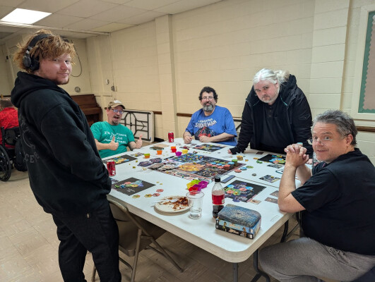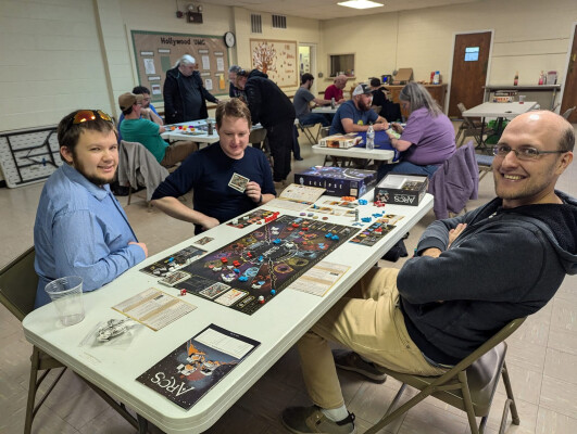 Around a dozen attendees have at some point attended a Sunday church service. One regular member of the board game group worked at a local bank, helping to secure a $500 donation for an upcoming mission trip. And when events like the church pancake breakfast arise, the board game group regularly shows up too.