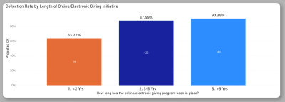“The suggestion from this is that the collection rate for churches is better the longer they’ve had online giving,” Gauthier explains. Electronic giving doesn’t create generosity out of nowhere, he adds, “but it makes it easier for people to follow through on the generosity they already intend.”