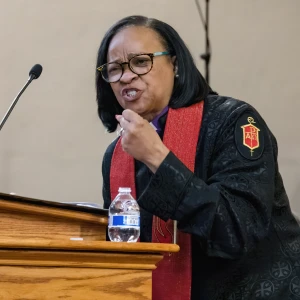 Bishop LaTrelle Miller Easterling, host bishop of the Baltimore-Washington and Peninsula-Delaware Episcopal Area, preached on Jesus’ final word, “Father, into your hands I commend my spirit.” She centered her message on the power of surrender and radical trust in God. Describing the scene at the cross with vivid detail, she emphasized that Jesus’ final words were not those of defeat, but of intentional offering. “This is not the language of helplessness,” she said, noting that even in death, “Jesus freely gives” his life into God’s hands. She framed the crucifixion not as the triumph of empire, but as its undoing, reminding listeners that God is present even in places of suffering and marginalization. What appeared to be loss, she said, was in fact transformation unfolding, a moment where “God does God’s most salvific work… in the mystery of darkness.”