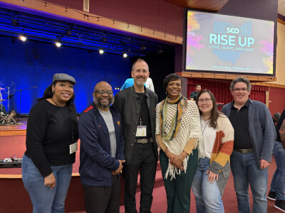 Our new congregational vitality team and clergy, Brent Wiles, Angelic Williams, Corey Sharpe, and his wife, Julie, and Megan Shitama Weston, traveled to Ocala, Florida, February 26-28, for the National Fresh Expressions Gathering “Altogether Now: Seven Generations and Beyond.” We spent time learning best practices for Fresh Expressions ministries, participating in local immersions, and receiving encouragement to step outside of the box in ministry from several bishops and speakers to make an impact for the generations to come. The “Jazz Note” speakers included Bishop Ken Carter, Bishop Sue Haupert-Johnson, Bishop David Wilson, and a host of pastors, directors, and lay leaders from various conferences. This year, there was also a large presence of attendees from the Evangelical Lutheran Church in America (ELCA). A couple of ECLA bishops shared remarks and wisdom from their ministerial context. Angelic Williams served as one of the panelists and shared her experience launching and sustaining successful Fresh Expressions ministries. Rai Jackson and his band, which included a mime and a spoken-word artist, led us in an innovative worship style for the duration of the gathering. They even had a DJ when we were not in corporate worship.